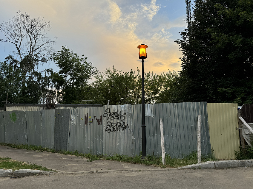 Он явно не служит украшением двора. За покосившимся разрисованным забором виднеются бытовки и туалетные кабинки.