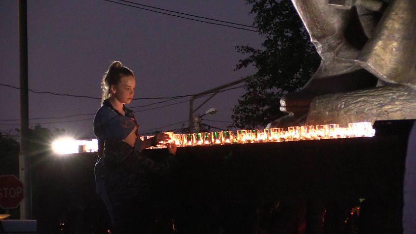 Площадь у Вечного огня и мемориала «Воинам-сибирякам» была практически безлюдна. Все, кто пришли вспомнить скорбную дату начала Великой Отечественной войны, стояли по периметру территории. В 22 часа диктор напомнил о том, что в ночь с 21 на 22 июня 1941года в советских школах прошли выпускные вечера, юноши и девушки шли встречать рассвет. Солнце взошло над Москвой в то утро в 3 часа 45 минут, а через 15 минут над территорией Советского Союза начались бомбёжки вражеских самолётов. Началась Великая Отечественная война. Звучал голос Левитана, стихи, музыка. Каждый из пришедших к мемориальному комплексу мог взять зажжённую свечу, постоять у Вечного огня в Карауле памяти и, сменяя друг друга, оставить свечу у мемориала «Воинам-сибирякам».