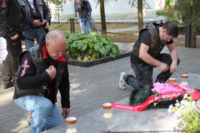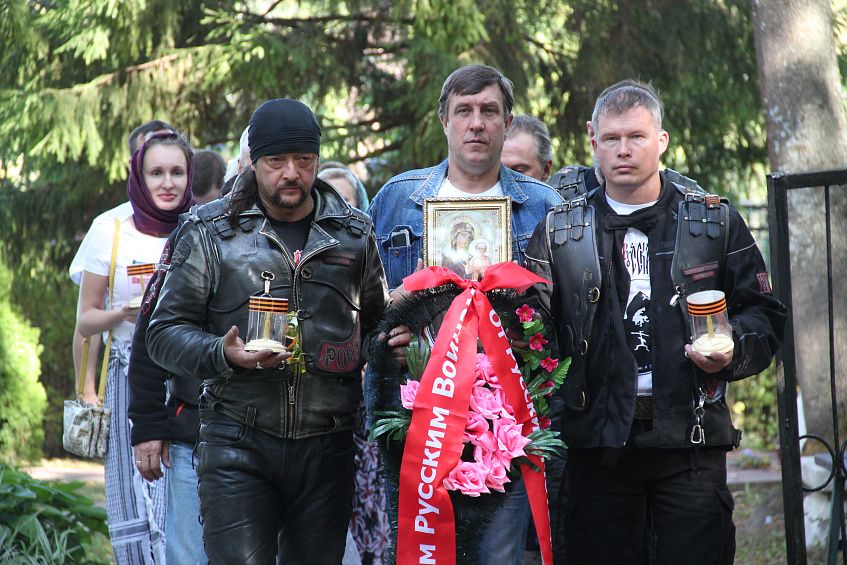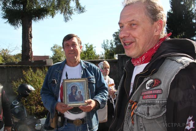 Сегодняшний день паломники начали с посещения церкви Покрова Пресвятой Богородицы в п. Пионерский и возложения венков к Мемориалу павшим воинам, защищавшим подступы к Москве в 1941 году. Участники мотопробега принесли в дар храму Казанскую икону Божией Матери. Таким образом, по словам организаторов, они поддерживают старорусскую традицию — иконодарение. "Зачастую мы привозим на подмосковную землю иконы с других православных земель, чтобы местные жители знали, кто такой, например, Савва Сербский, и наоборот, мы дарим иконы настоятелям храмов Болгарии и Сербии, чтобы познакомить со святыми земли Русской", - поясняет Евгений Строгов.