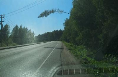 В этот же день в городском паблике Истры появилось сообщение о том, что при въезде в д. Духанино над дорогой повисло сломанное дерево: "Подскажите, куда обратиться, чтобы убрали, самому спилить и утилизировать нет ни времени, ни возможности".