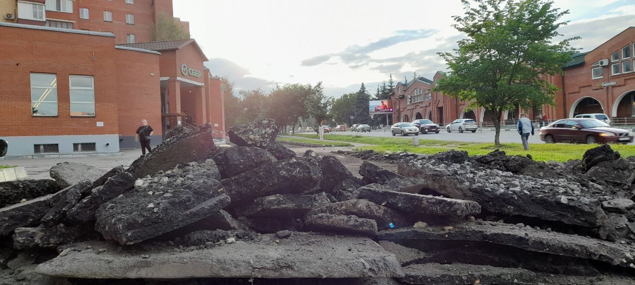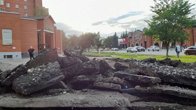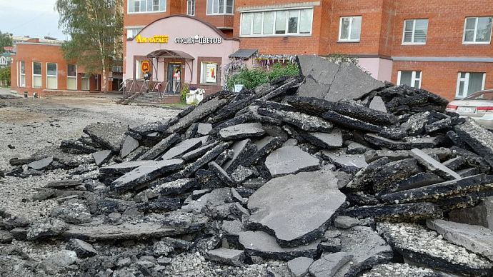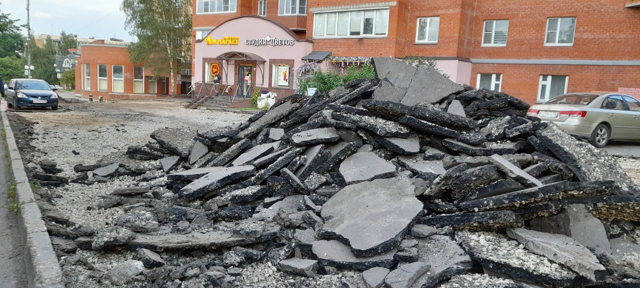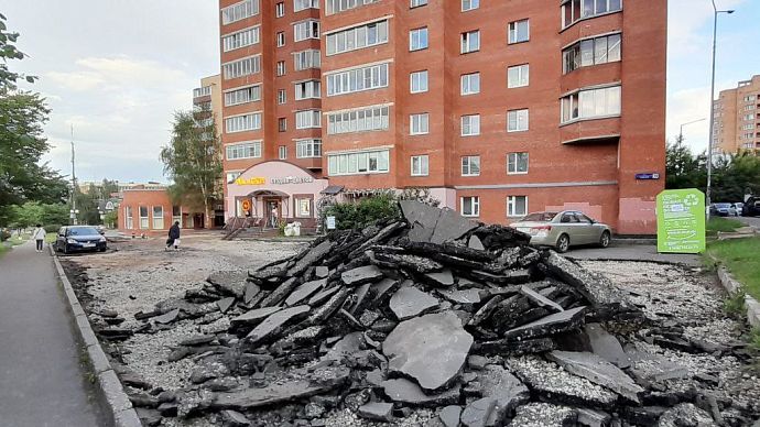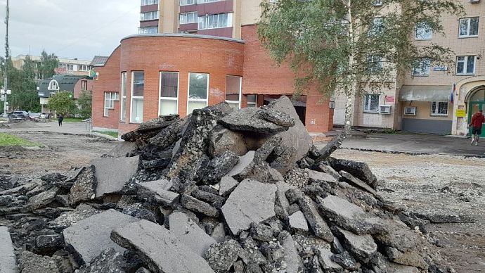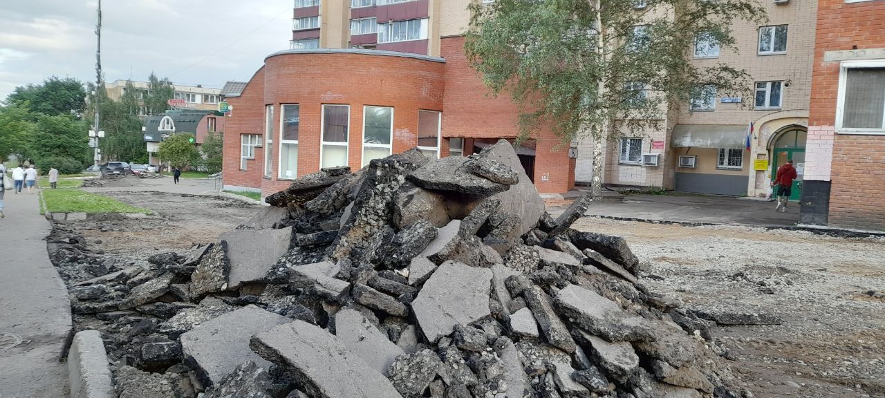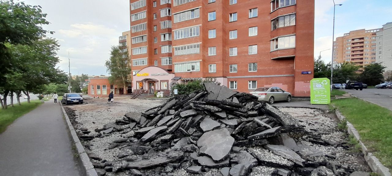 В настоящее время на так называемой дворовой территории по данному адресу ведётся благоустройство. Дорожные рабочие снимают старый асфальт. Взамен ям и выбоин, на которые неоднократно обращали внимание жители города, на территории появится асфальтированная парковка.