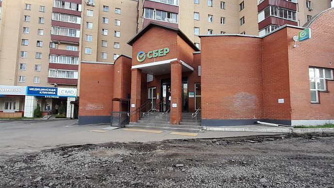 Возможно, дело дойдёт и до разметки, которой с появлением единственного офиса Сбербанка здесь очень не хватает. При этом сами рабочие не смогли пояснить, изменится ли здесь схема движения по окончании ремонтных работ. Сегодня автомобили заезжают и выезжают во двор довольно хаотично.