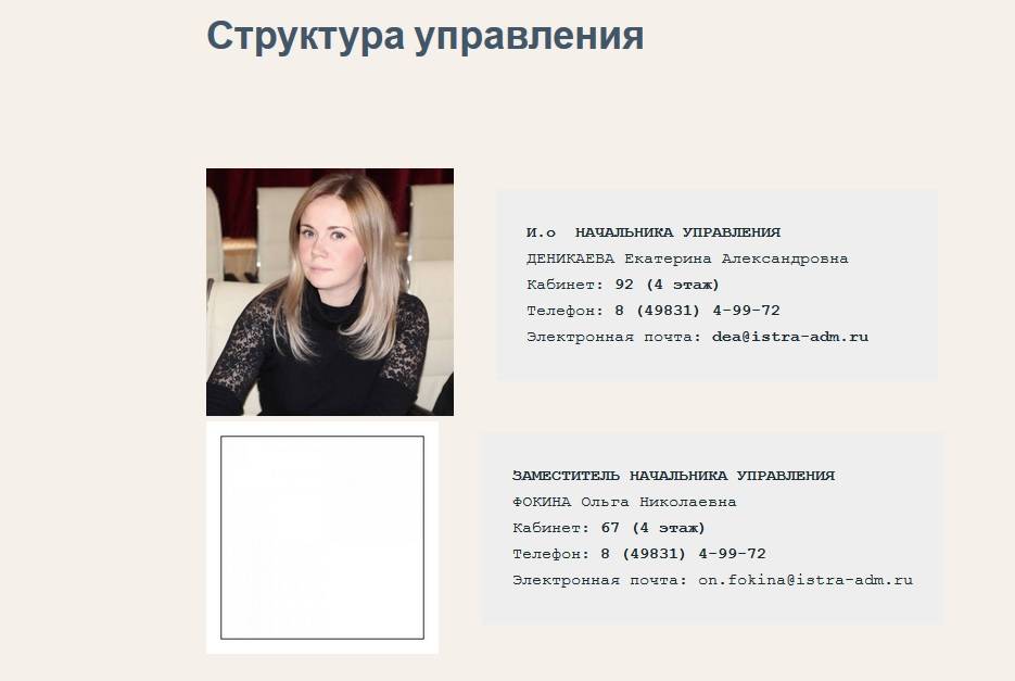 Заместитель начальника Управления: Фокина Ольга Николаевна. Однако на сайте самого управления эта информация отображена иначе.