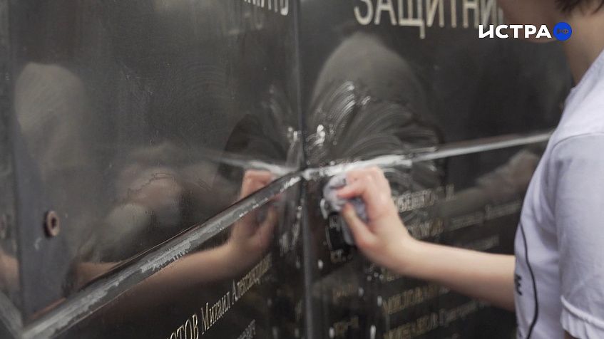 Школьники очистили гранит от пыли и убрали территорию вокруг мемориала.