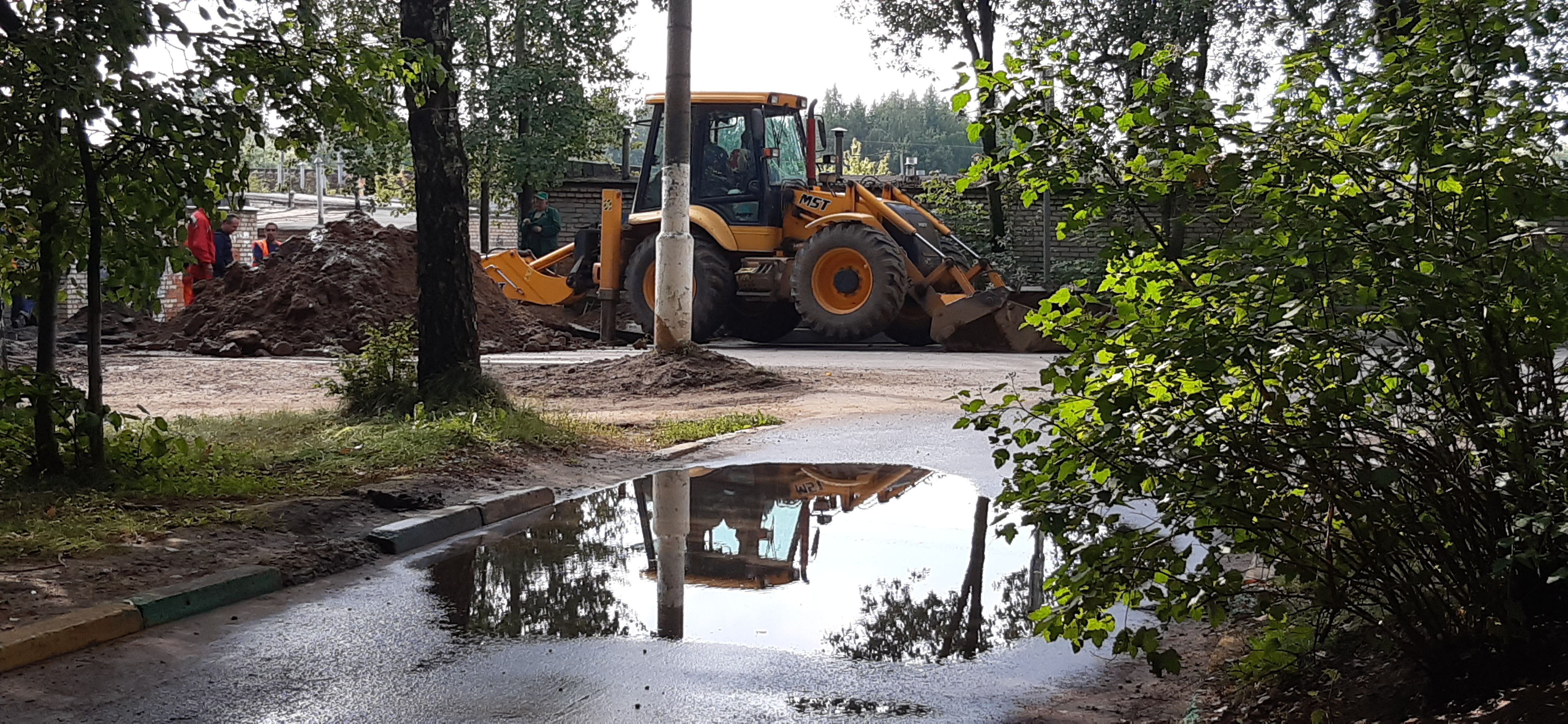 На улице Юбилейной в Истре коммунальные службы города проводят работы. Привести в порядок разрушенное дорожное полотно и открыть автомобильное движение планируют ближе к вечеру.