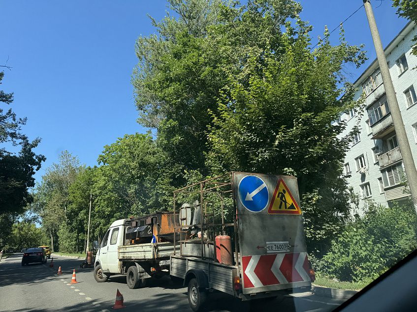 Рабочие снимают старое асфальтовое покрытие и укладывают новое на отдельных участках.