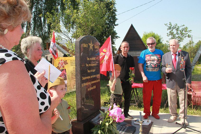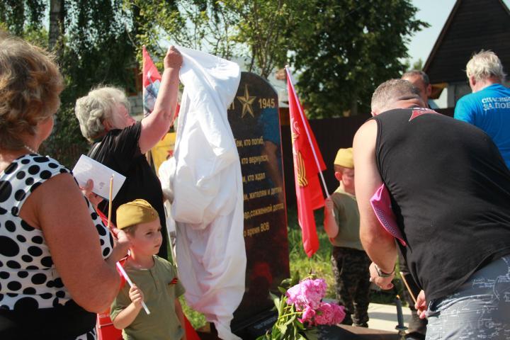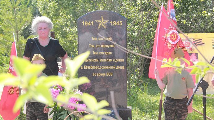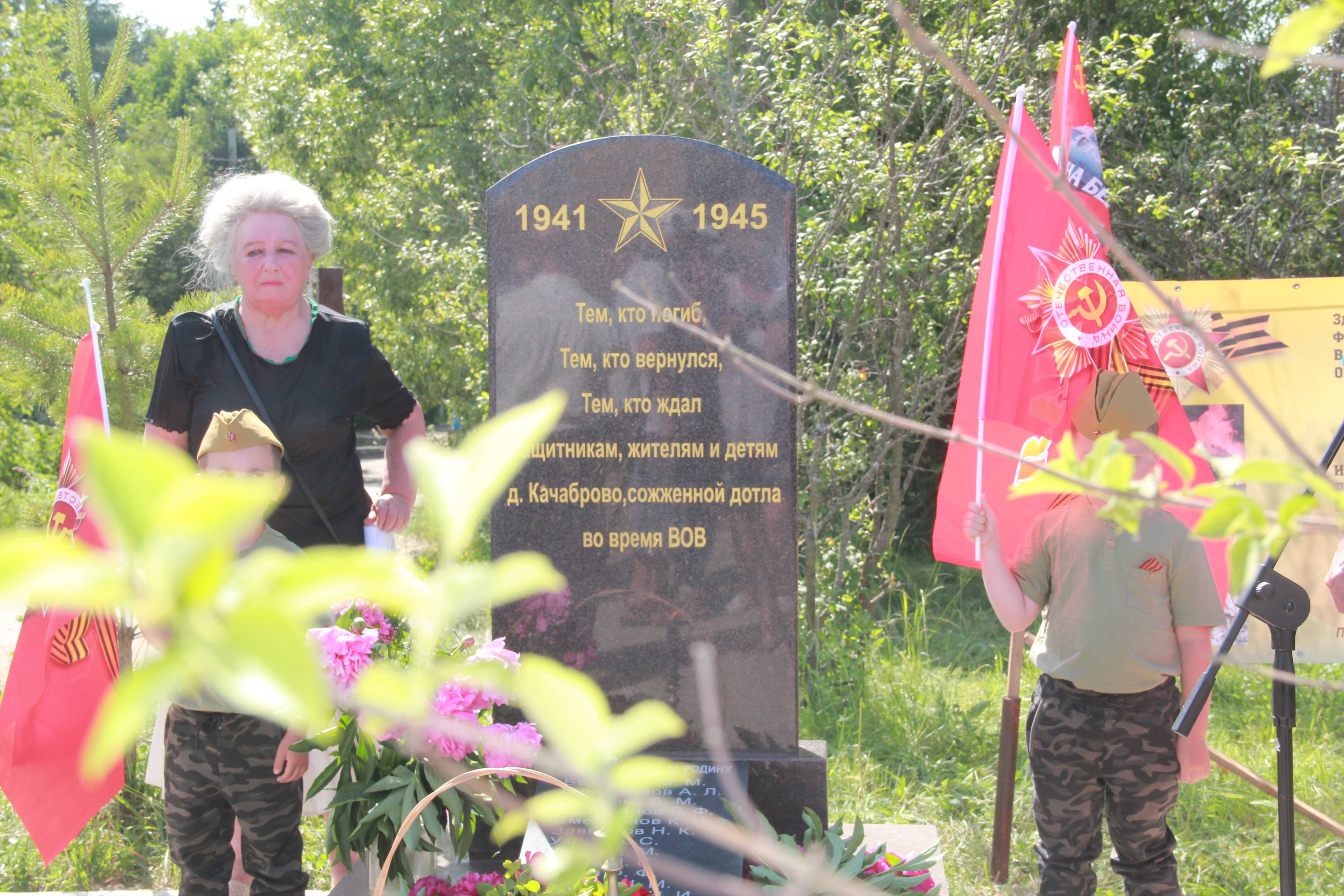 На мероприятии присутствовали все, кто оказался в этот жаркий день в деревне. Местная жительница Качаброво, Надежда Барышева, взяла слово и выразила благодарность всем, кто внёс посильный вклад в создание памятника. Жительница вспомнила, как непросто пришлось им, детям, в годы войны. По словам Надежды Михайловны, сегодня наследники Великой победы сделали то, что должны были сделать уже очень давно.