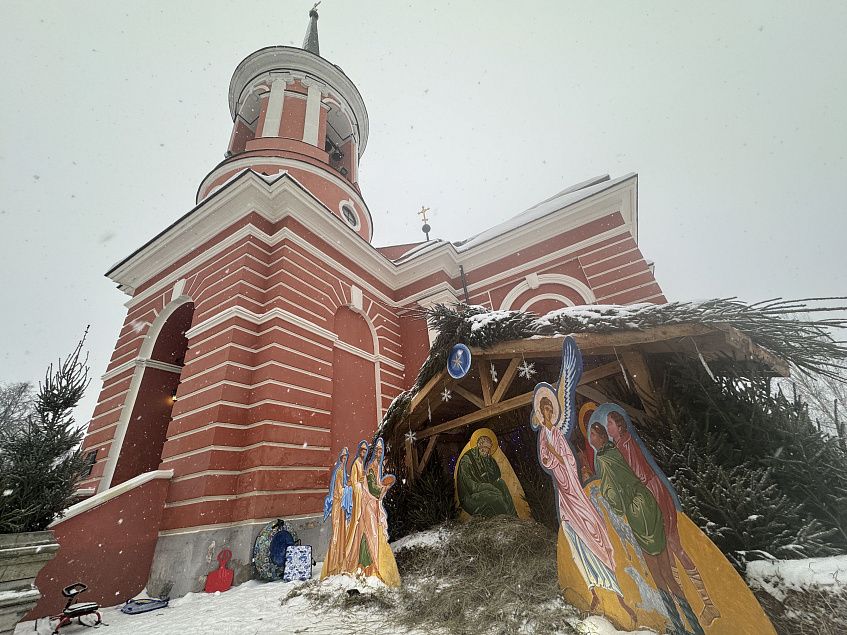Рождественская литургия прошла при большом стечении верующих в празднично украшенном храме. Верующие могли приложиться к святыне.