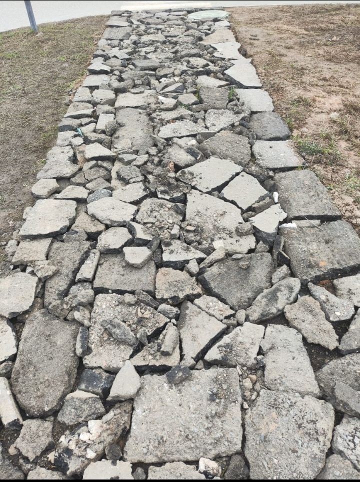 «Только не подумайте, что он так разрушен. Это чудо научного прогресса выложили нам вчера! Сколько же сил было потрачено на геометрический подбор рисунка асфальтового боя! Интересно в администрации запатентовали эту технологию?» — не без сарказма оценили работу чудо-мастеров местные жители.