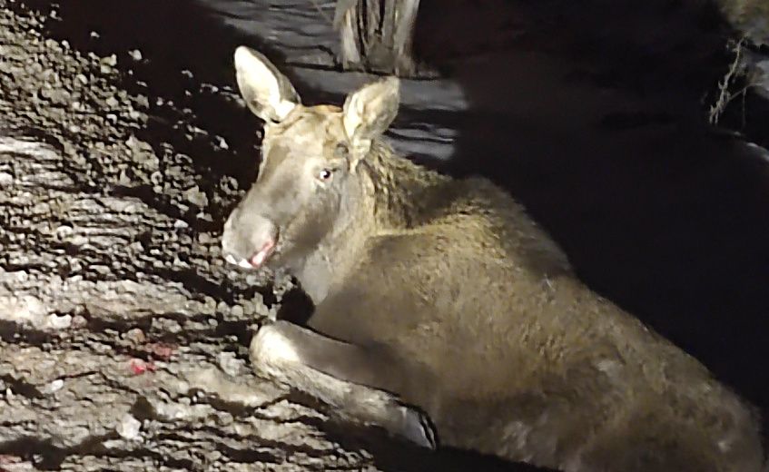 Внимание привлёк тот факт, что лось не мог самостоятельно встать. Подойдя ближе, люди обратили внимание на кровь на снегу и многочисленные осколки от повреждённого автомобиля. Стало понятно, что животное было сбито машиной.