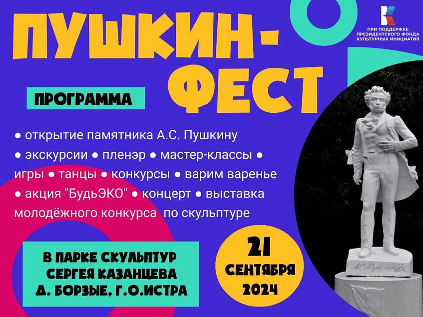 В рамках фестиваля состоится открытие памятника Александру Сергеевичу Пушкину.