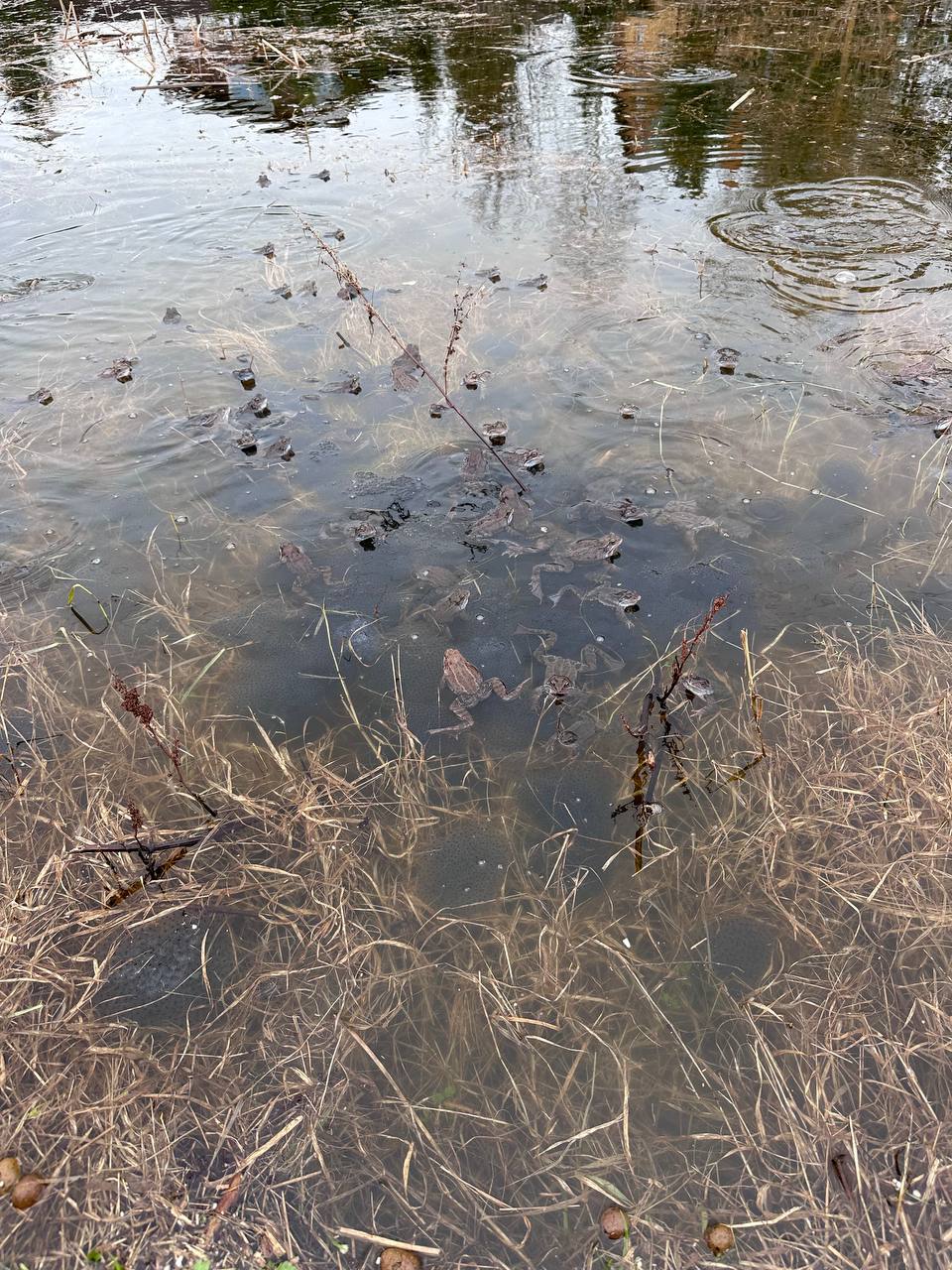 Объяснением такого явления, вероятно, может стать прошедший ливень и пробудившиеся с наступлением тёплой погоды от спячки земноводные.