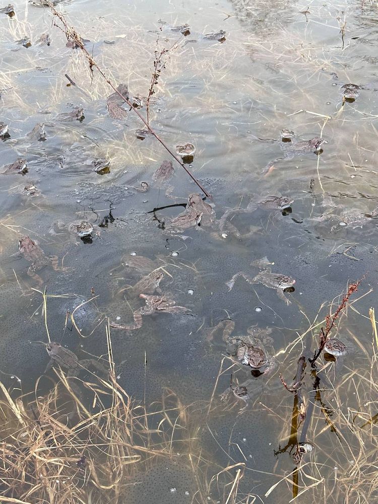«Это у нас такая лужа-болотце у ворот. Там вообще место удивительное: растут краснокнижные жёлтые ирисы, утки выводят утят, а в этом году вот что», — делится с нами жительница Анна Ф.