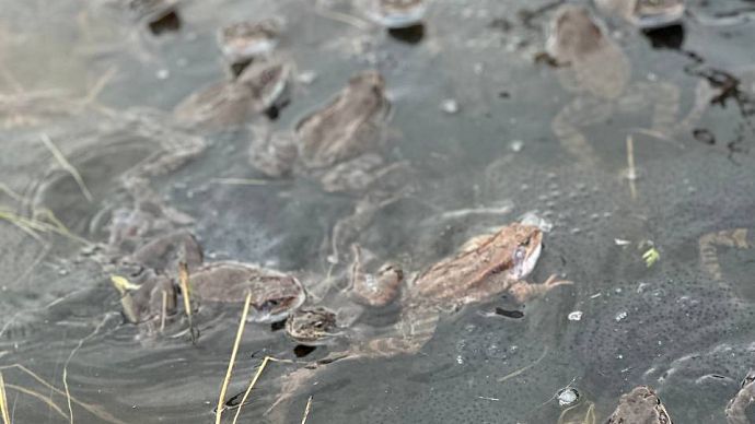Жители ЖК «Сказка» в Павловской Слободе, где были сняты эти кадры, удивлены таким скоплением лягушек, но в этом небольшом водоёме и не такое можно увидеть.