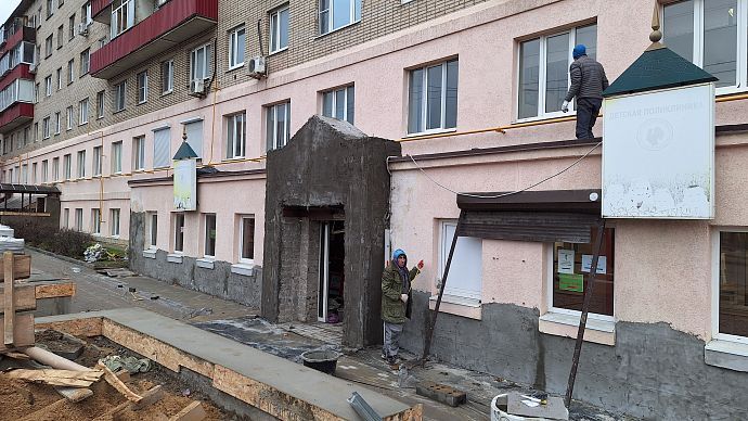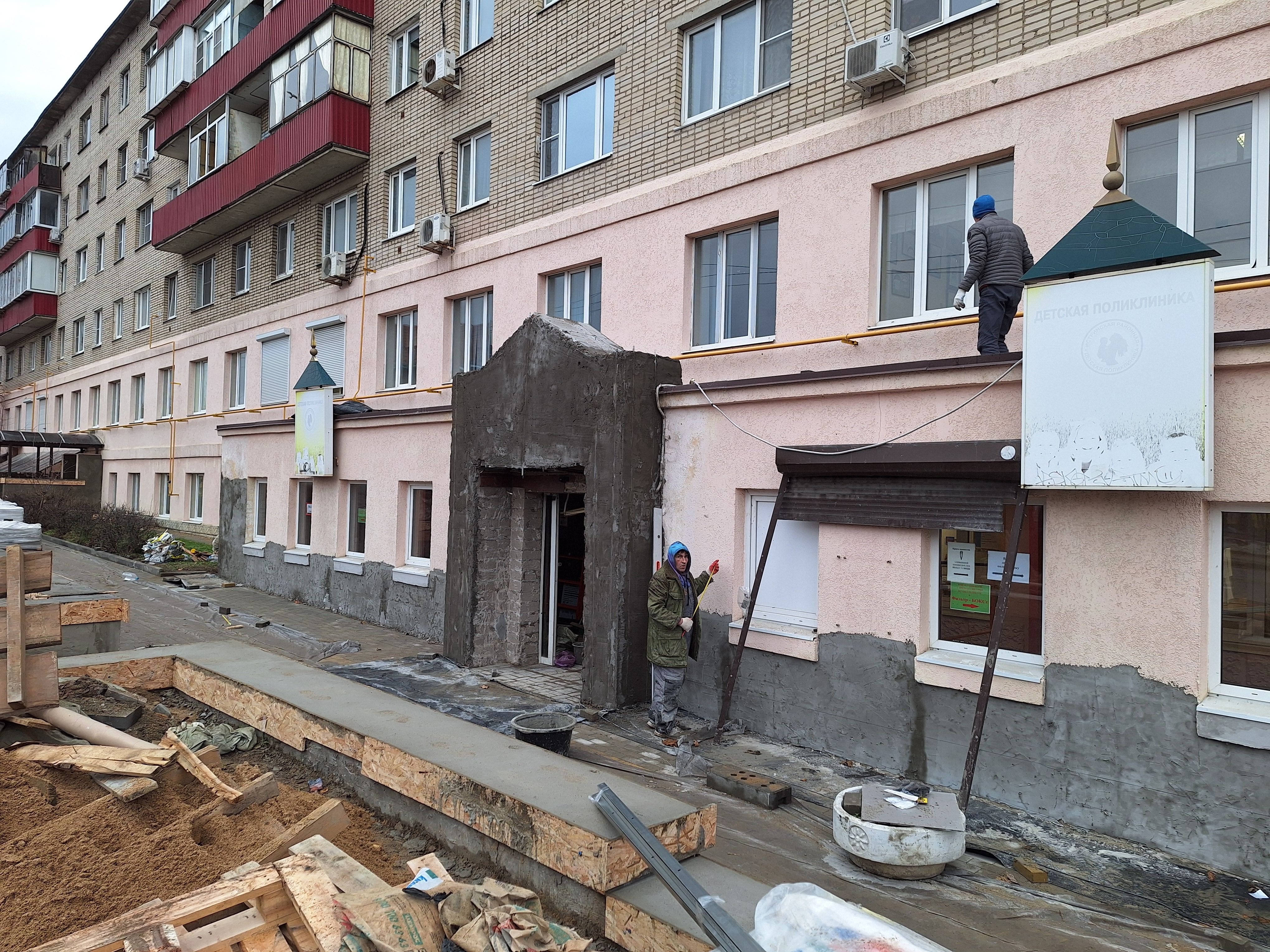 В рамках благоустройства пешеходной зоны у детской поликлиники обновят фасад
