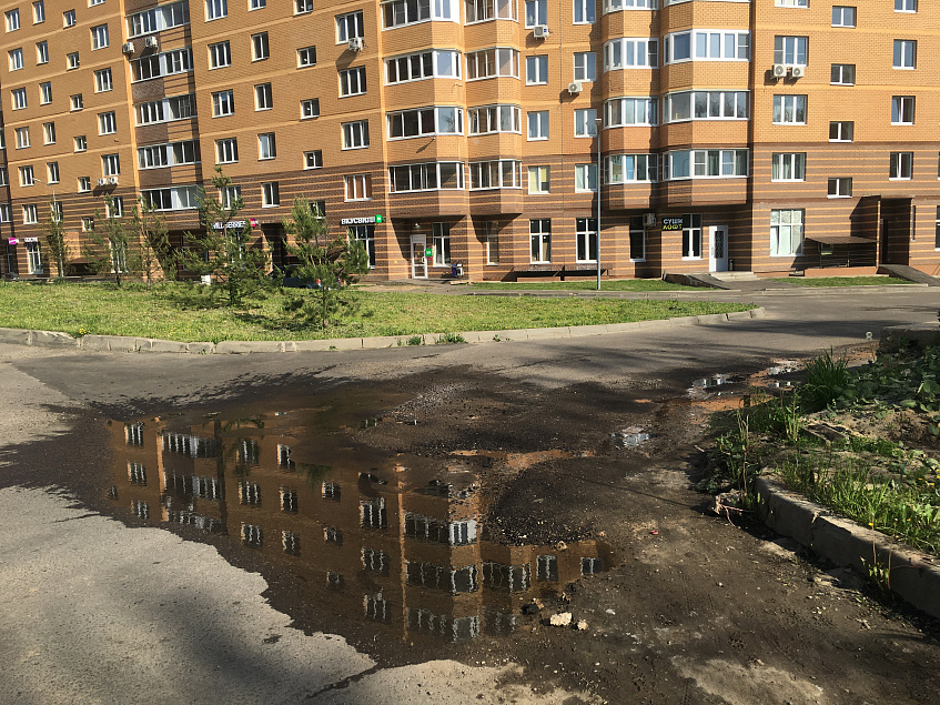 Вода появляется прямо из-под асфальта. Обеспокоенные граждане немедленно сигнализировали об утечке на водопроводных сетях в чате теротдела.