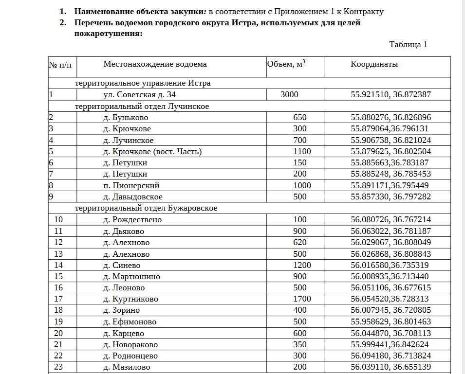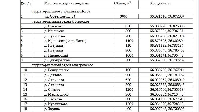 Водоёмы пожаротушения Истринского округа поставят на кадастр