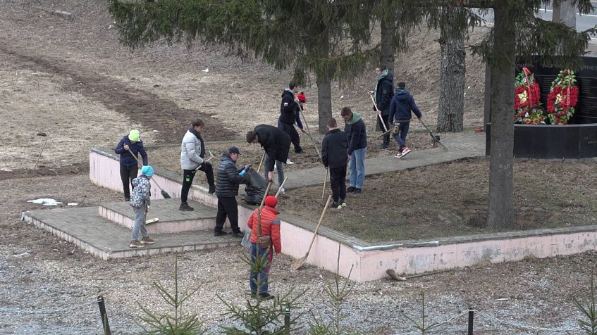 Воспитанники школы бокса привели в порядок территорию у памятника в Вельяминове