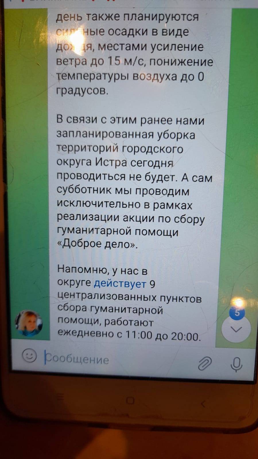 Об этом сообщили в телеграм-каналах всех территориальных отделов городского округа Истра.