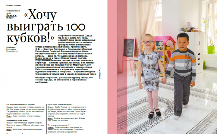- впервые - детское интервью: спортивные танцовщики Олеся и Марк;