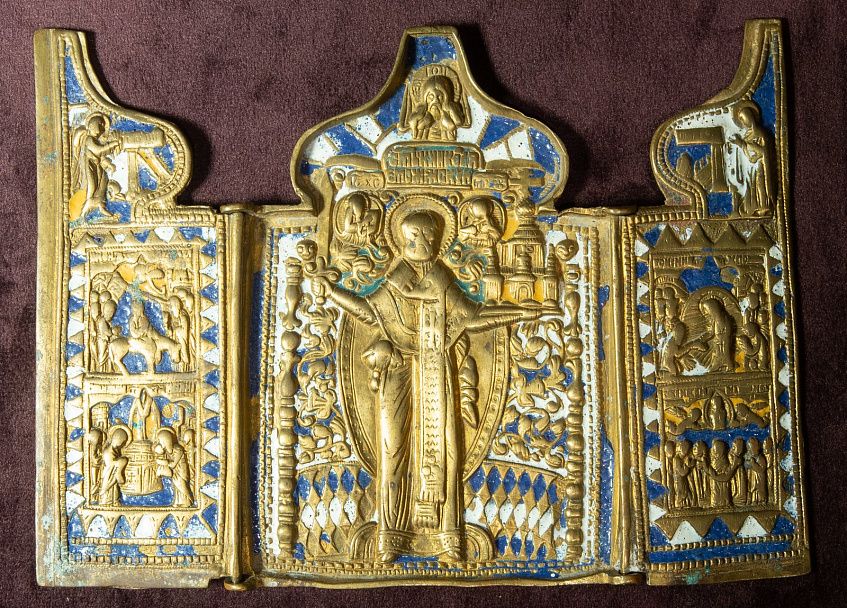 Иконопись, скульптура, медно-литая пластика и относящиеся к различным иконографическим вариантам изображения святителя — широкое разнообразие предметов представлено в одном из залов раздела.