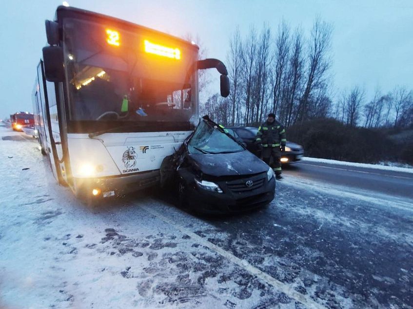 Автобус смял легковой автомобиль на Новорижском шоссе
