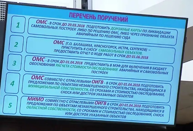 Как утверждает докладчик, результатом мероприятий по ликвидации недостроев станет улучшение визуального восприятия городов Московской области, вовлечение неиспользованных территорий в хозяйственную деятельность, создание общественных пространств, освобождение территорий для социально значимых объектов и создание новых рабочих мест.