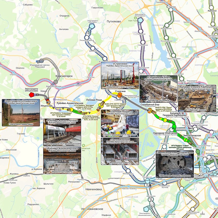 Сегодня губернатор Московской области Андрей Воробьев и мэр Москвы Сергей Собянин дали старт строительству участка от «Липовой рощи» до «Строгино». Работы будут вестись с помощью щита-гиганта «Мария», который проложит тоннель длиной более 2 км. Максимальная глубина проходки составит 40,2 м.