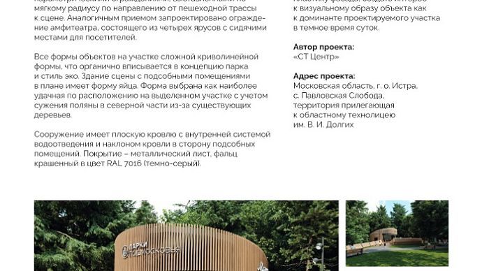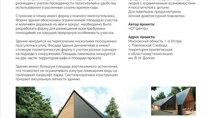 «Летом этого года мы в первый раз провели архитектурный конкурс и фестиваль «Лучший проект Подмосковья». На конкурс было представлено почти 100 заявок, 15 проектов стали финалистами. Со всеми проектами, представленными на конкурс, можно ознакомиться в каталоге», — рассказала главный архитектор Подмосковья Александра Кузьмина.