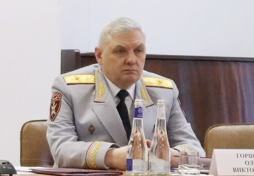Генерал-майор полиции Олег Горшков начал свою службу в правоохранительных органах в 1979 году курсантом Высшего политического училища МВД СССР в г. Ленинграде. С 1994 года занимал руководящие должности в подразделениях вневедомственной охраны города Москвы. С 2005 по 2008 был начальником факультета подготовки специалистов криминальной милиции Московского университета МВД России. До 2012 года руководил Управлением по работе с личным составом УВД по Новгородской области. В 2013 году назначен на должность начальника Управления по работе с личным составом ГУ МВД России по г. Москве. В октябре 2016 года возглавил Управление Росгвардии по Калининградской области.