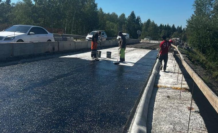 Рабочие также выполнили устройство выравнивающего, защитного и нижнего слоёв покрытия, закончили с арматурой и гидроизоляцией.