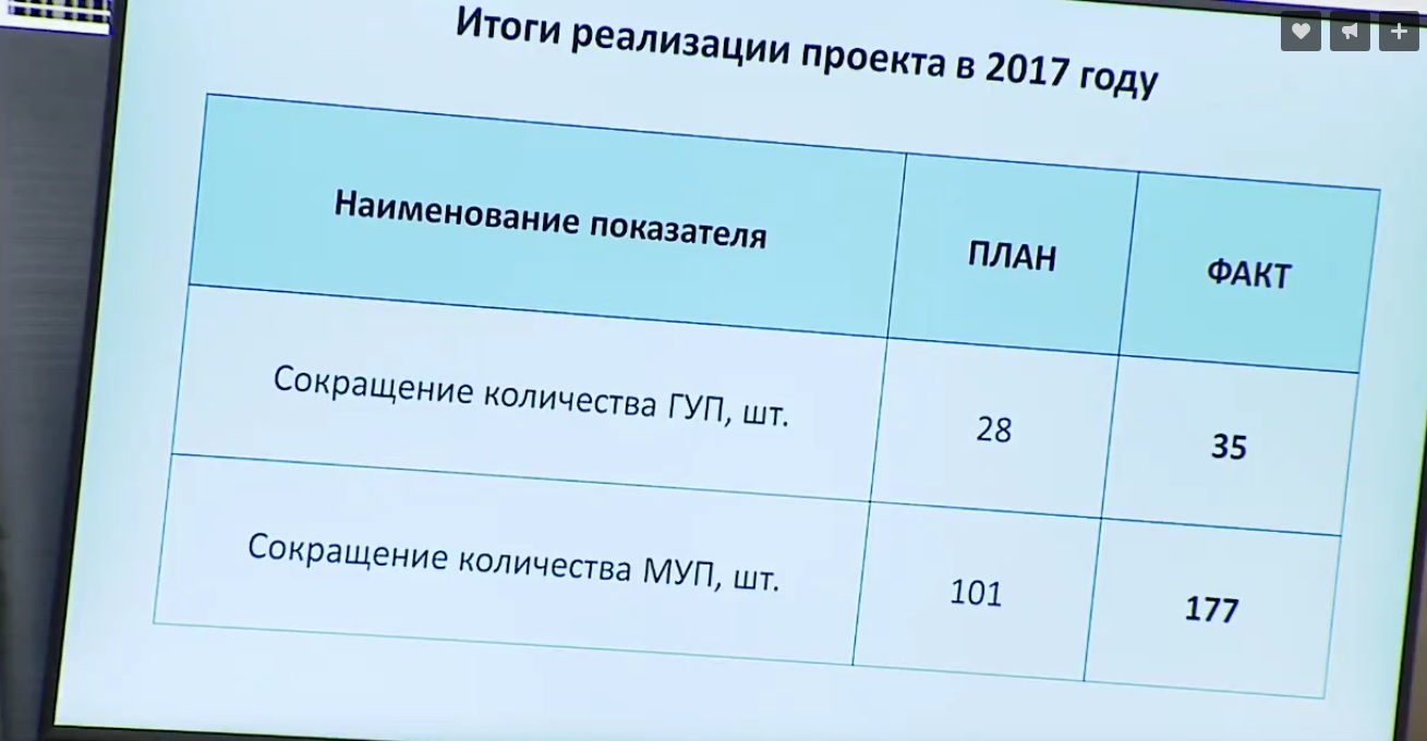 По словам министра имущественных отношений Московской области Андрея Аверкиева, в Подмосковье на окончание 2017 года осталось 519 МУПов, 177 были сокращены, из них часть была преобразована в учреждения, в остальных была завершена процедура банкротства, иные присоединены к другим МУПам, а часть добровольно ликвидирована.