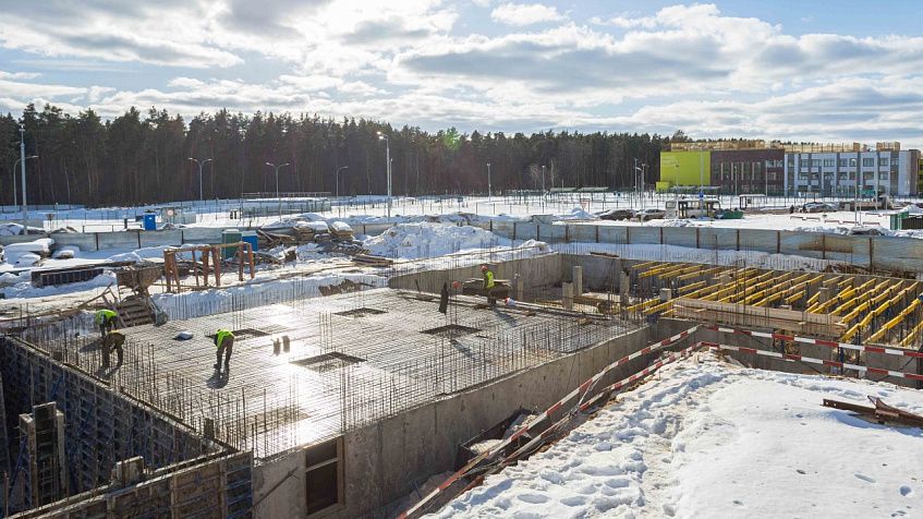 «Корпус 1.7: завершается возведение каркаса здания. Выполняется монтаж кровли, окон и лифтов. Строители ведут устройство инженерных сетей», — говорится в сообщении.