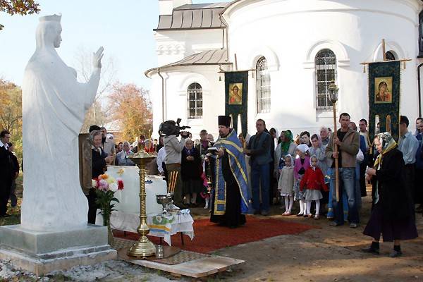 Сегодня храм Казанской иконы Божией Матери в селе Ламишино – украшение Истринского округа. Белоснежный, устремляется он золочёными крестами в небо. Возле храма, словно оберегая его, — статуя Божией Матери.