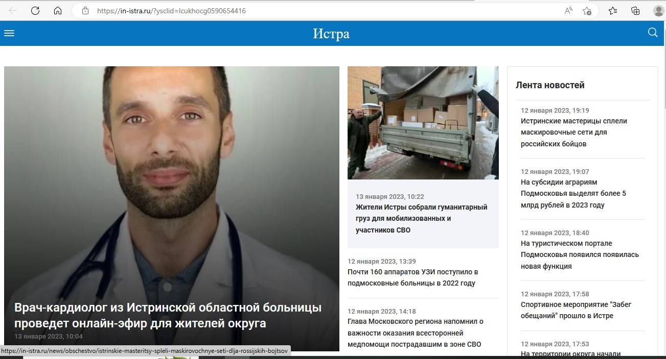 Если в поисковой строке набрать по старинке «Истринские вести», то вы сможете прочитать региональные новости с привязкой к городскому округу Истра, многие из которых как под копирку повторяют новостную повестку сайта администрации округа. Никакой заглавной "шапки" с названием редакции на странице нет...