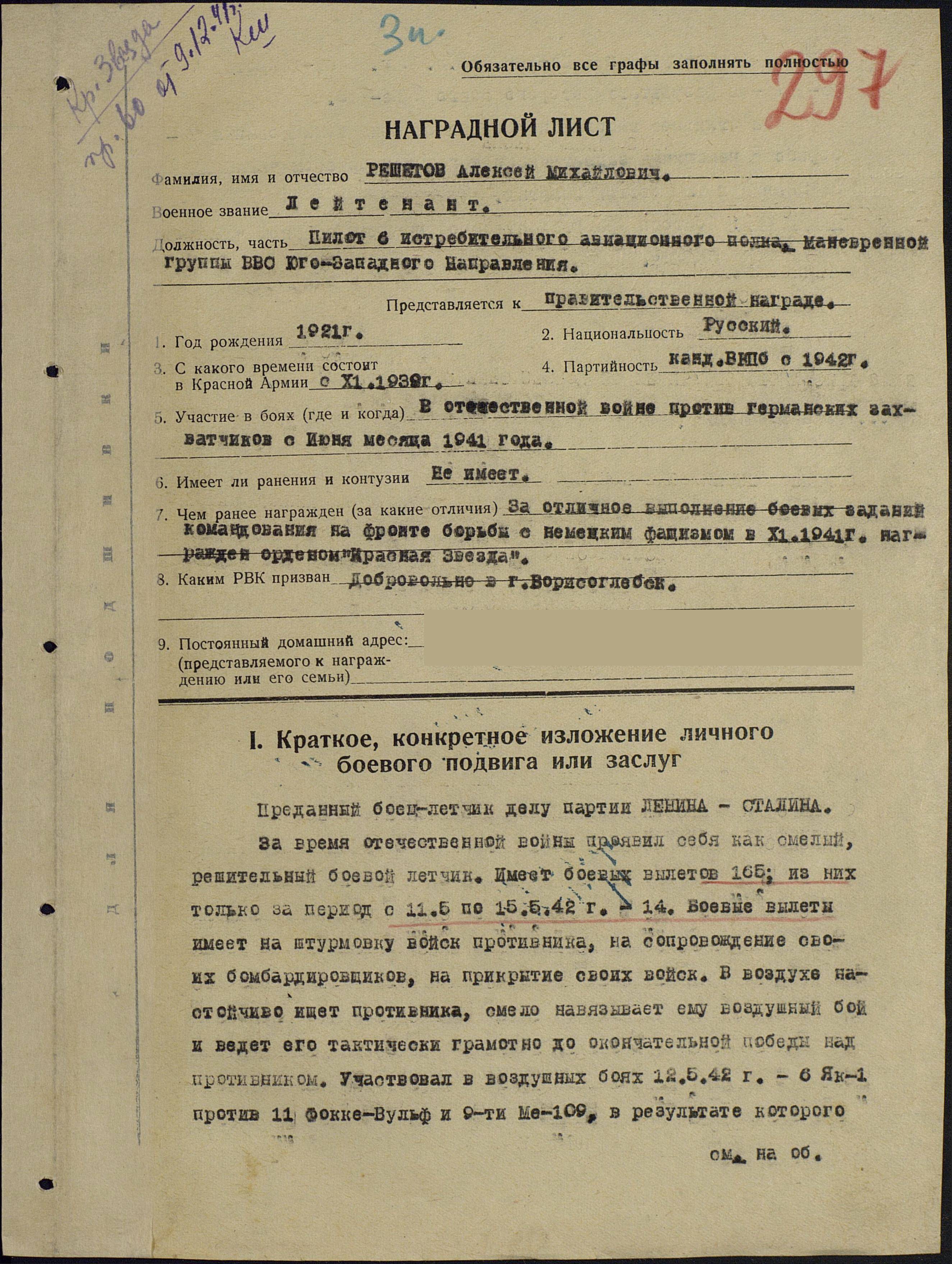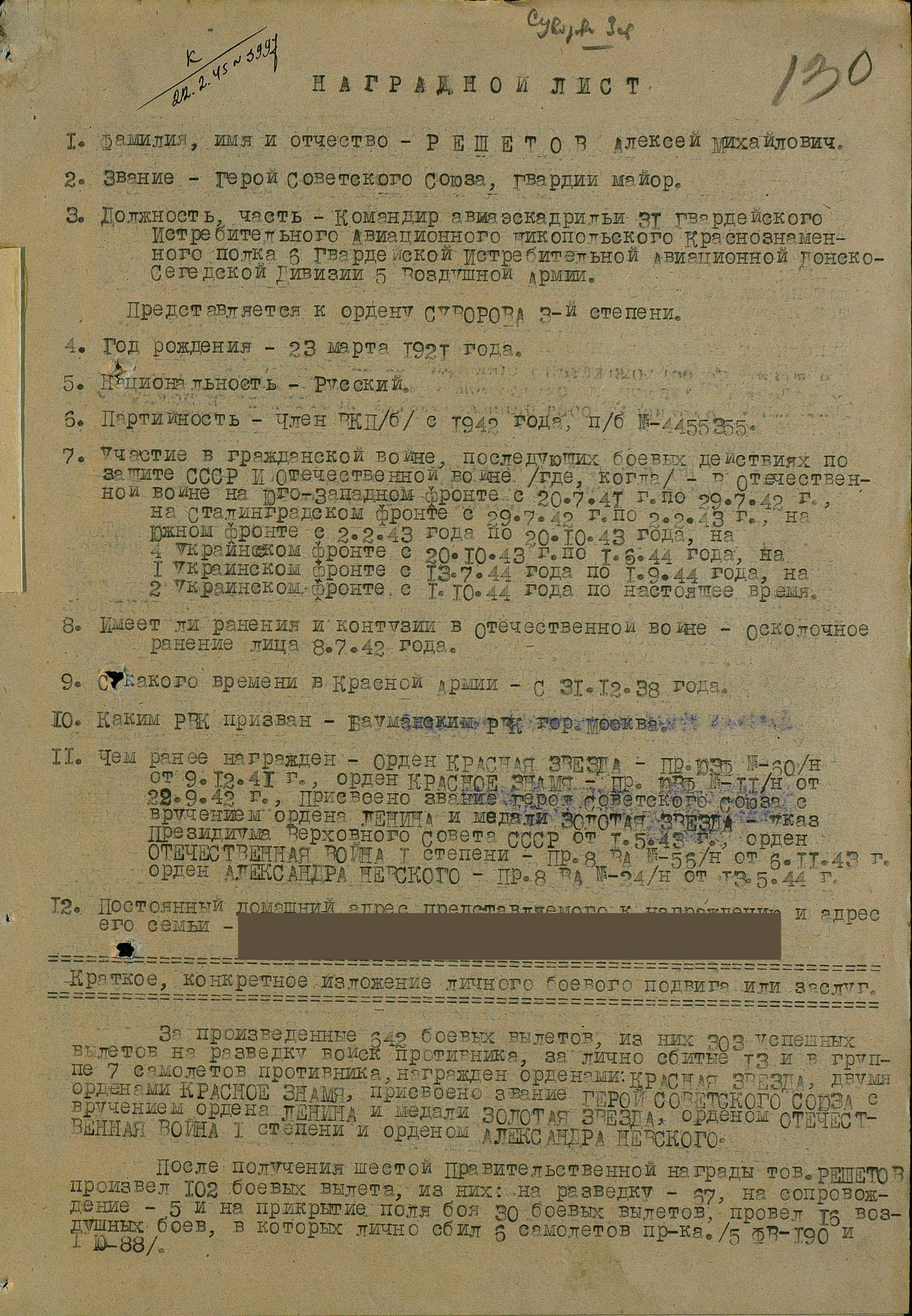 Первого мая 1943 года вышел в свет Указ Президиума Верховного Совета СССР, согласно которому Алексей Михайлович Решетов стал Героем