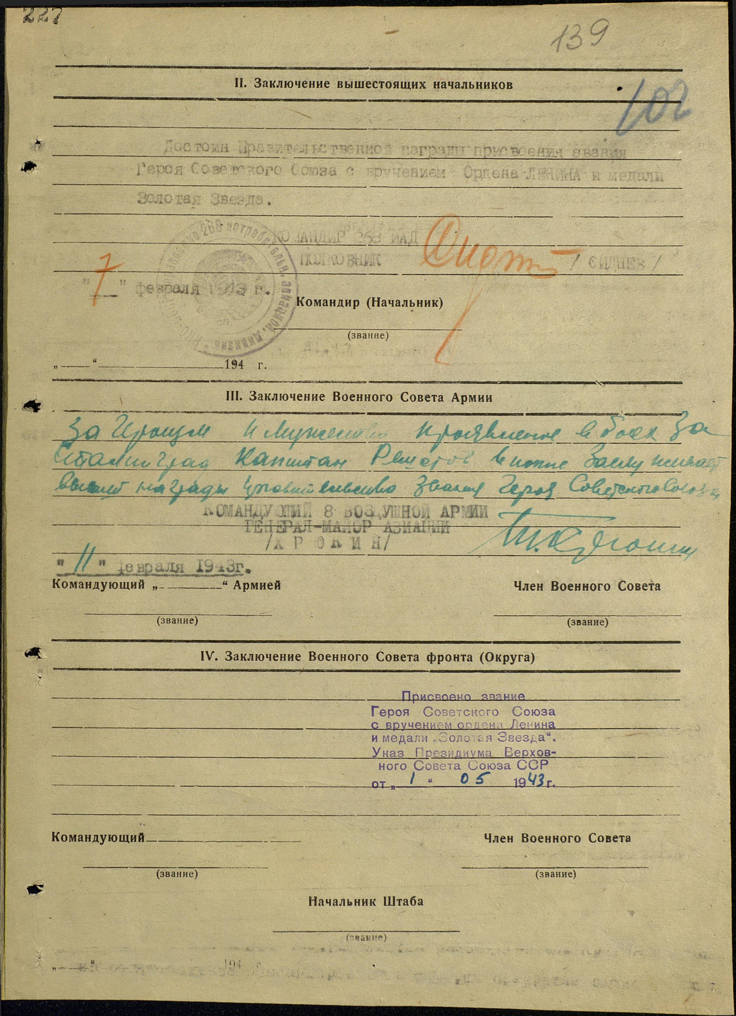 К этому времени Алексей Михайлович Решетов носил на груди уже два ордена Красного Знамени, орден Красной Звезды.