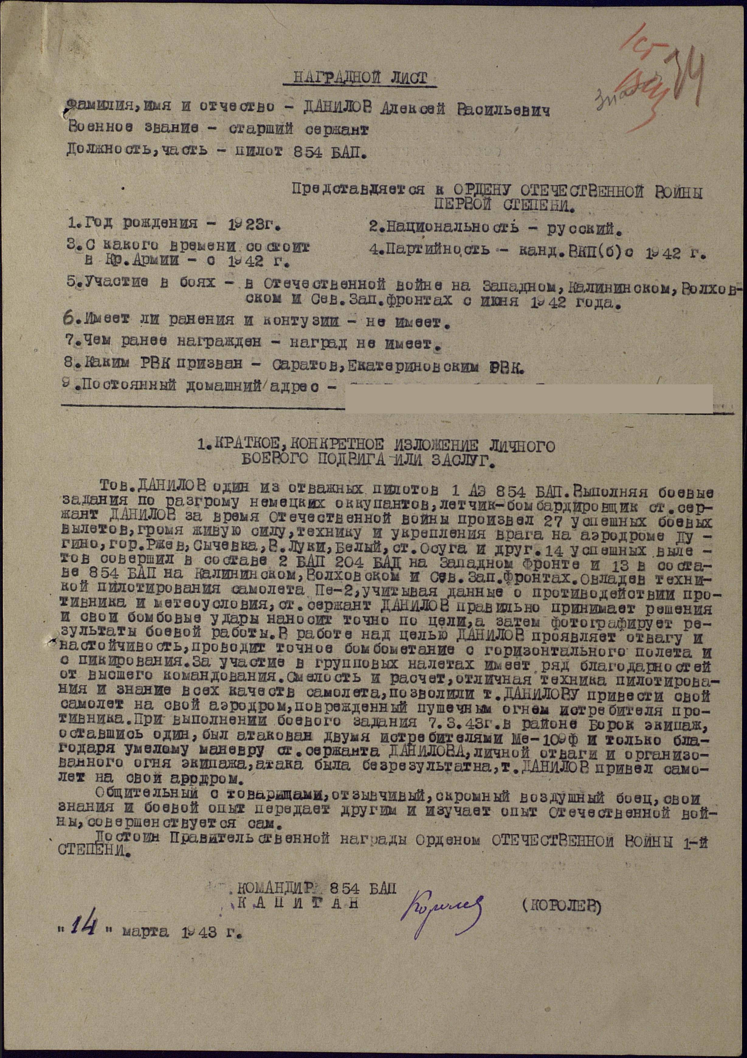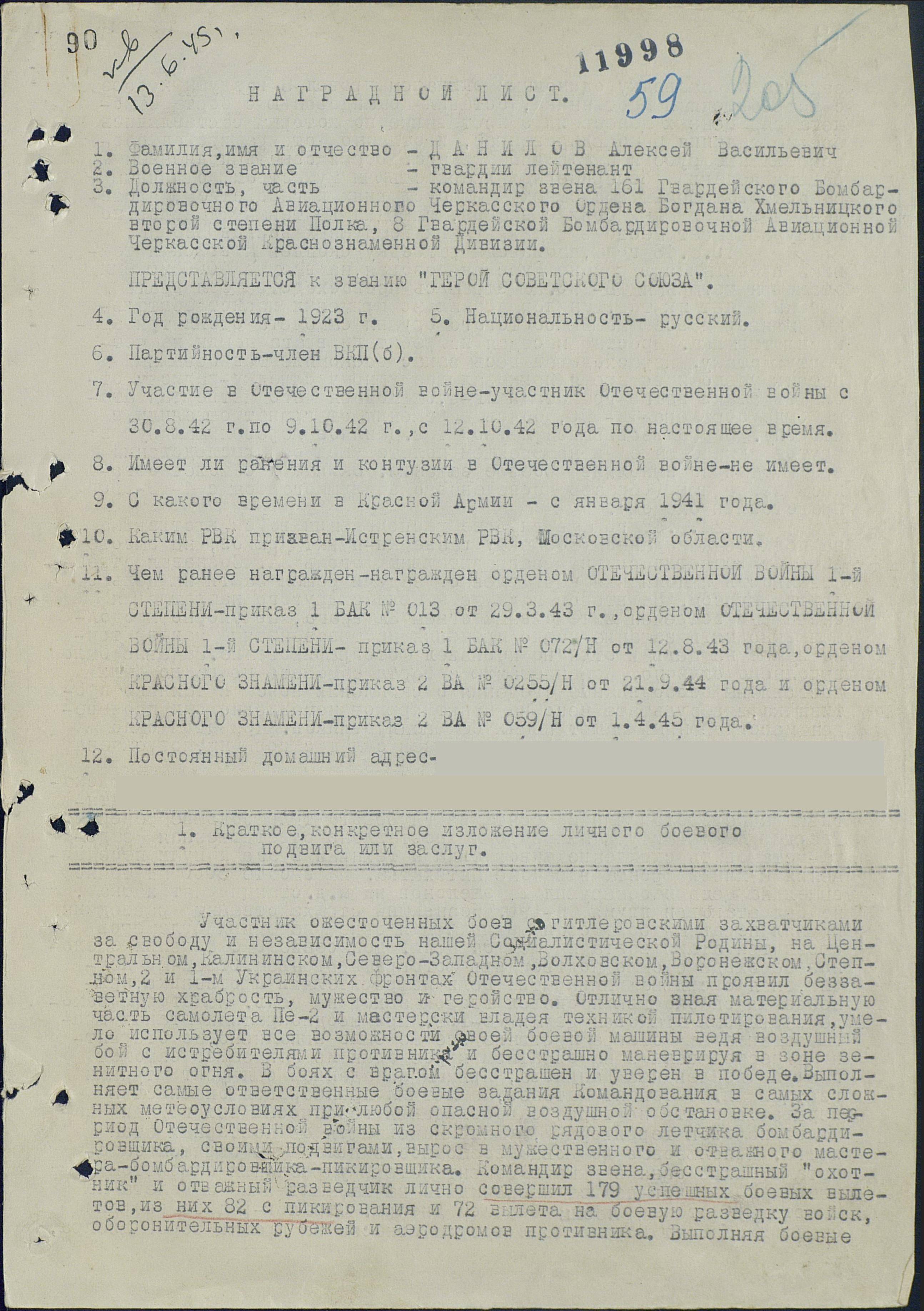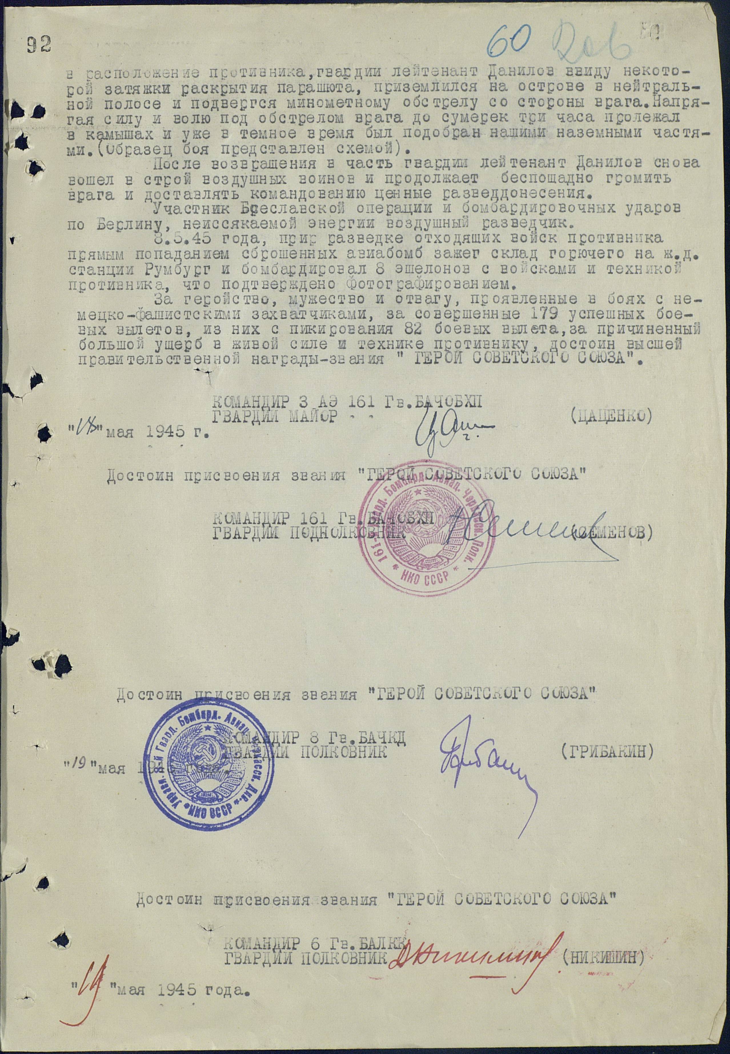 После того, как Данилова привели в чувство, он снова вернулся в свой полк. Получил новенькую машину и опять стал громить отступавшего врага. Участвовал в Брестской операции, воевал в Польше, бомбил Берлин. Короче, сражался до самого Дня Победы.