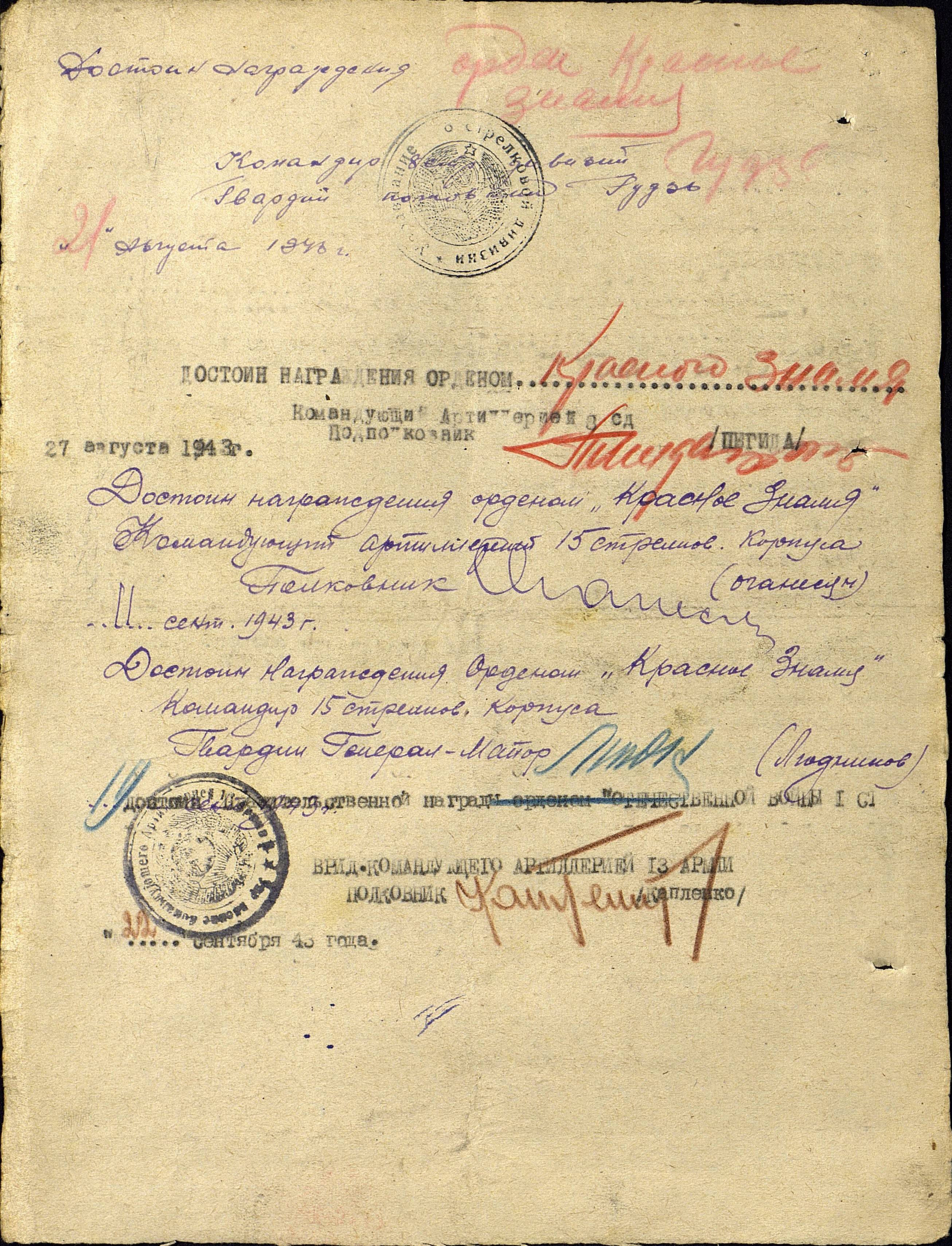 Через пять месяцев, 22 сентября, его наградили орденом Отечественной войны Первой степени.