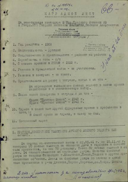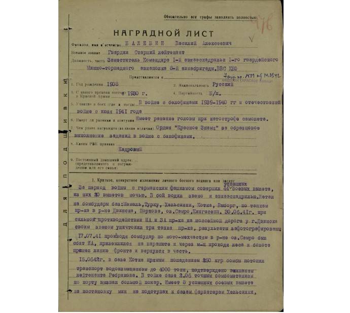 Данные из наградных документов Василия Балебина: