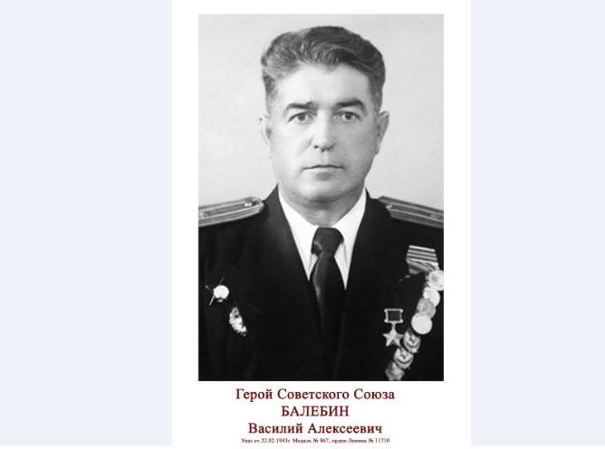 На счету Василия Алесеевича Балебина — более пятисот боевых вылетов, 16 потопленных транспортов и кораблей врага, 9 сбитых вражеских истребителей.