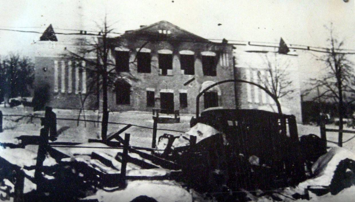 Первый раз после оккупации я увидела свою школу, когда наша семья возвращалась из убежища на территории больницы. Пошли мы по бывшей улице Ленина (от домов в большинстве случаях остались печки и кое-где палисадники), свернули на Советскую, и вот она, моя школа!