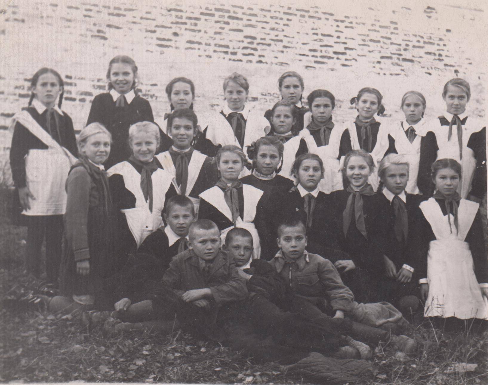 Это тоже ученики школы им. Крупской. Надпись под фото говорит о том, что сделано оно недалеко от монастыря, где тогда и располагалась эта школа.