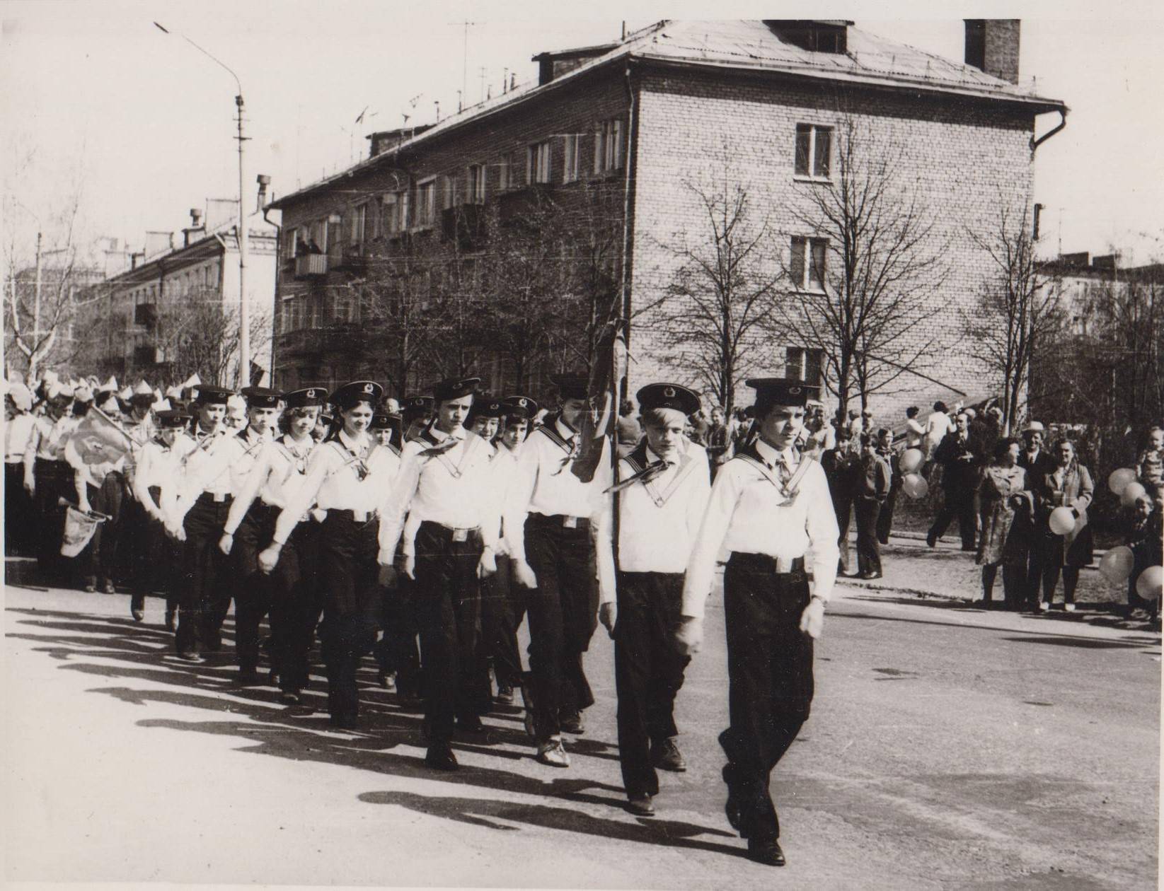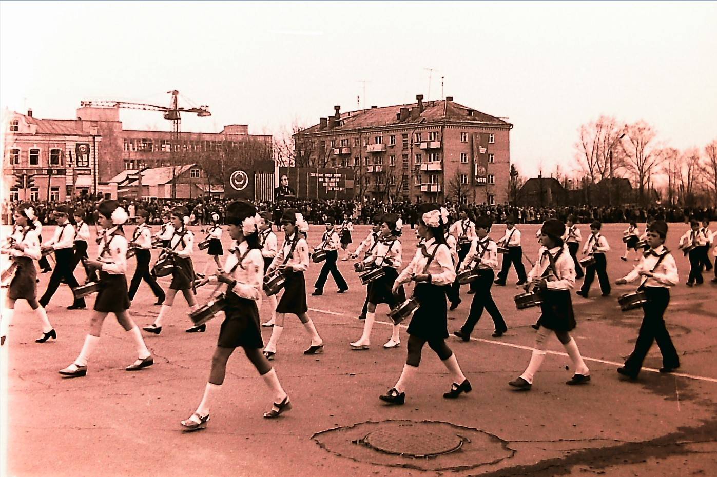 Кстати, пионеры были завсегдатаями первомайских праздников. Парадная форма, алые галстуки добавляли праздникам на площади Революции особой торжественности.