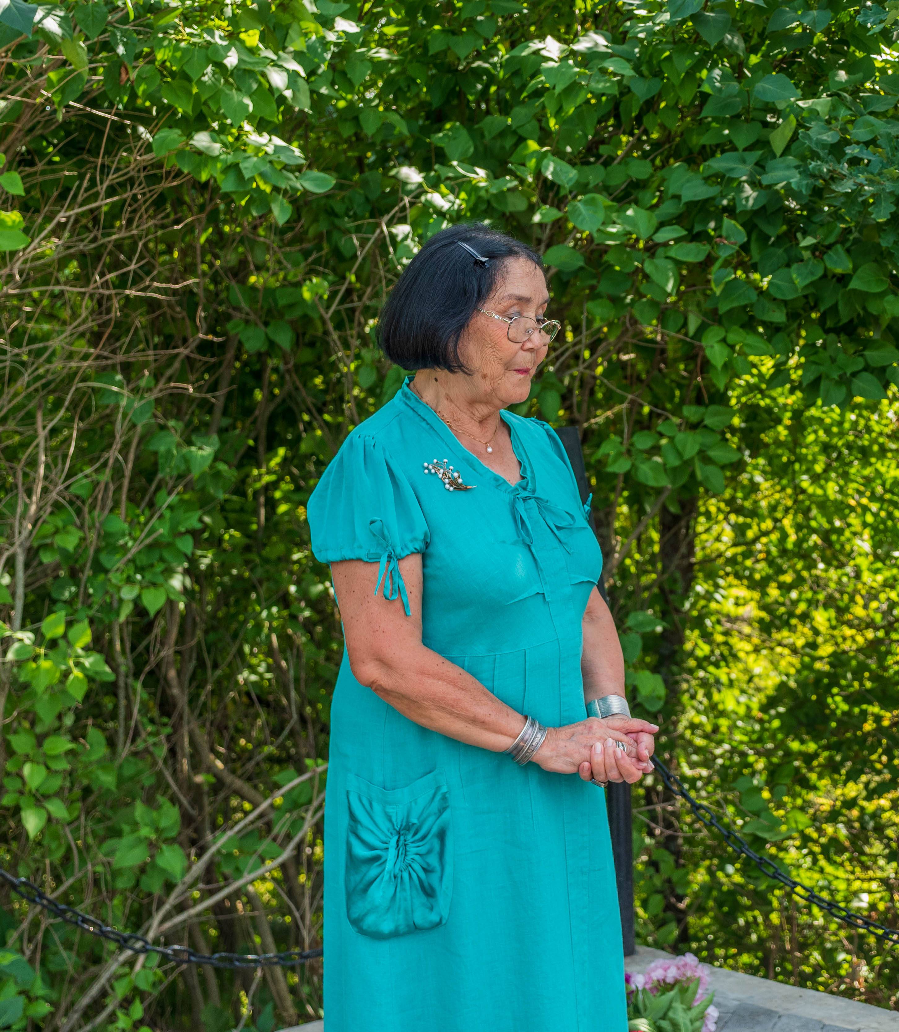 Наталья Утевлевна — заслуженная артистка РСФСР, житель ДНТ «Кино», эта стародачная местность расположена на южной окраине деревни Крюково. Сын Натальи Аринбасаровой Егор Кончаловский постоянно участвует в организации культурных мероприятий на территории городского округа Истра. Наталья Утевлевна сказала: «Такие проекты очень важны и интересны для людей. Очень важно во времена, когда наши памятники в мире разрушают, не забывать про свои и создавать новые». Актриса прочитала два отрывка из редких и малоизвестных стихотворений и поэм о Великой Отечественной войне, написанных в советское время и нашими современниками.