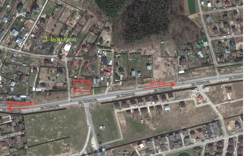 Прямой выезд на автодорогу Истра-Крючково (ш. Южное)-10 метров, напротив находится крупный КП Опушкино.