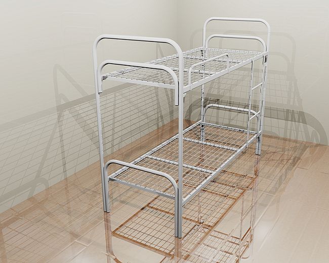• Кровати Металлические двухъярусные и трехъярусные с дополнительными лестницами, для удобного взбирания на верхние спальные места