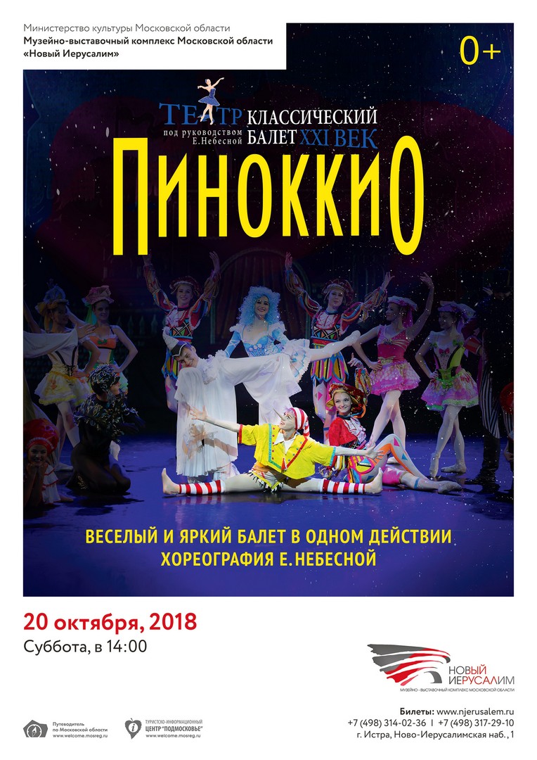 20 октября в 14.00 на сцене музейно-выставочного комплекса «Новый Иерусалим» – весёлый и яркий балет в одном действии «Пиноккио».