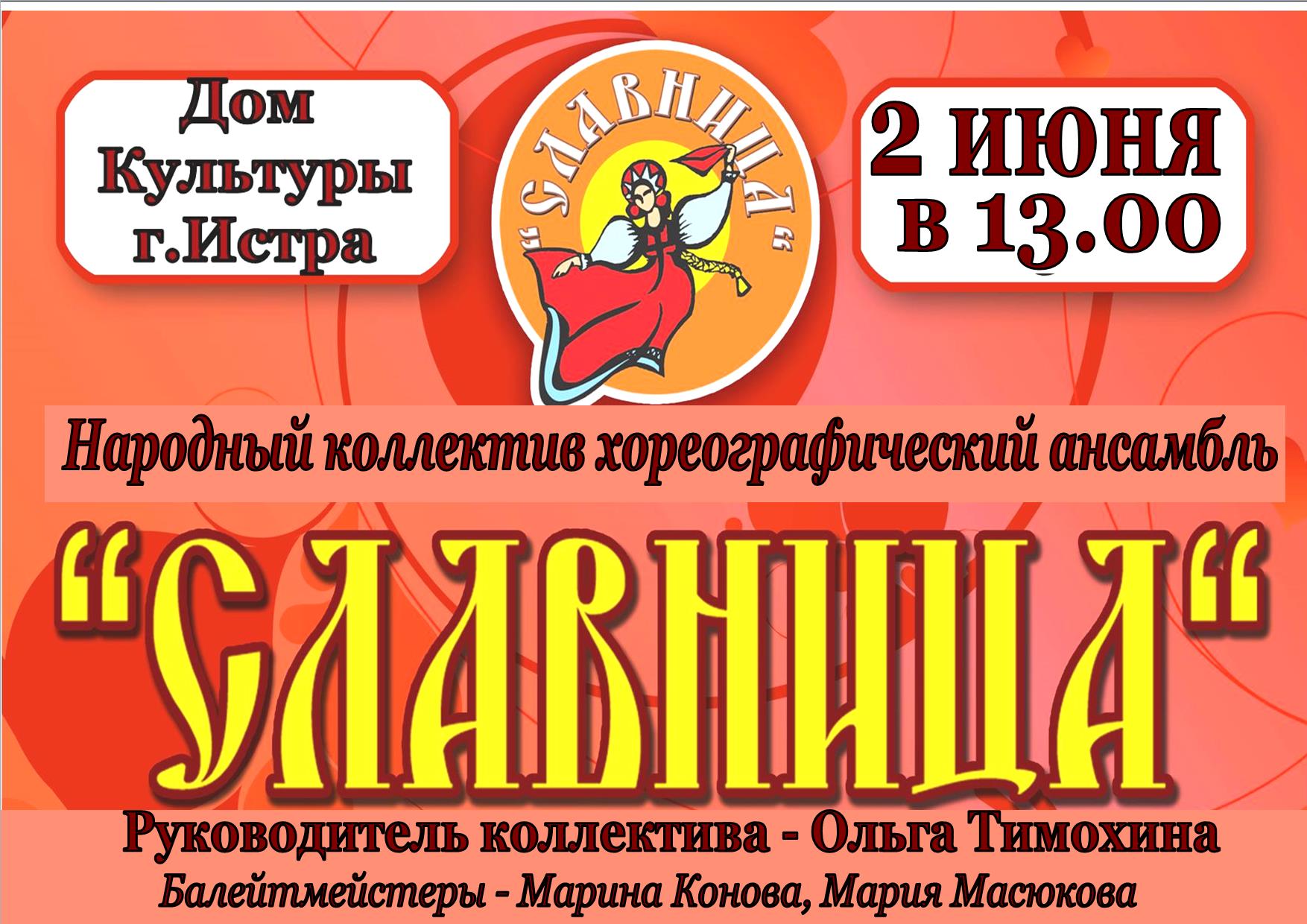 2 июня в ДК г. Истры состоится концерт Народного коллектива, хореографического ансамбля "Славница".