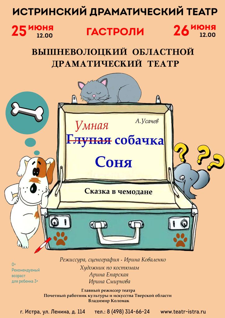 Спектакль создан по всеми любимой с детства книге Андрея Усачёва «Умная собачка Соня».